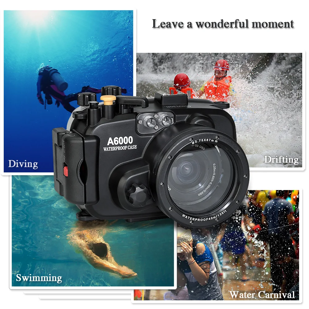 Product Name: Searogs A6000 40 متر تحت الماء الغوص كاميرا مقاومة للماء الإسكان الحال بالنسبة لسوني كاميرا A6000 كاميرا الملحقات