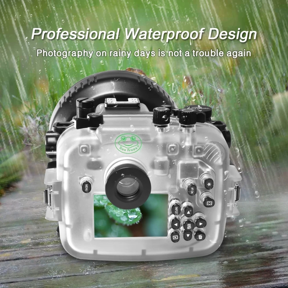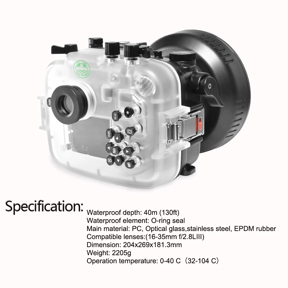 Product Name: Searogs كاميرا مثبت مضاد للماء لكانون EOS RP IPX8 SLR كاميرا الغوص قذيفة حالة تحت الماء التصوير غطاء المهنية