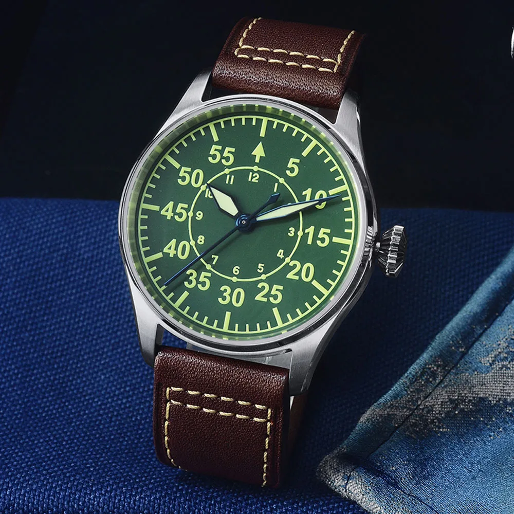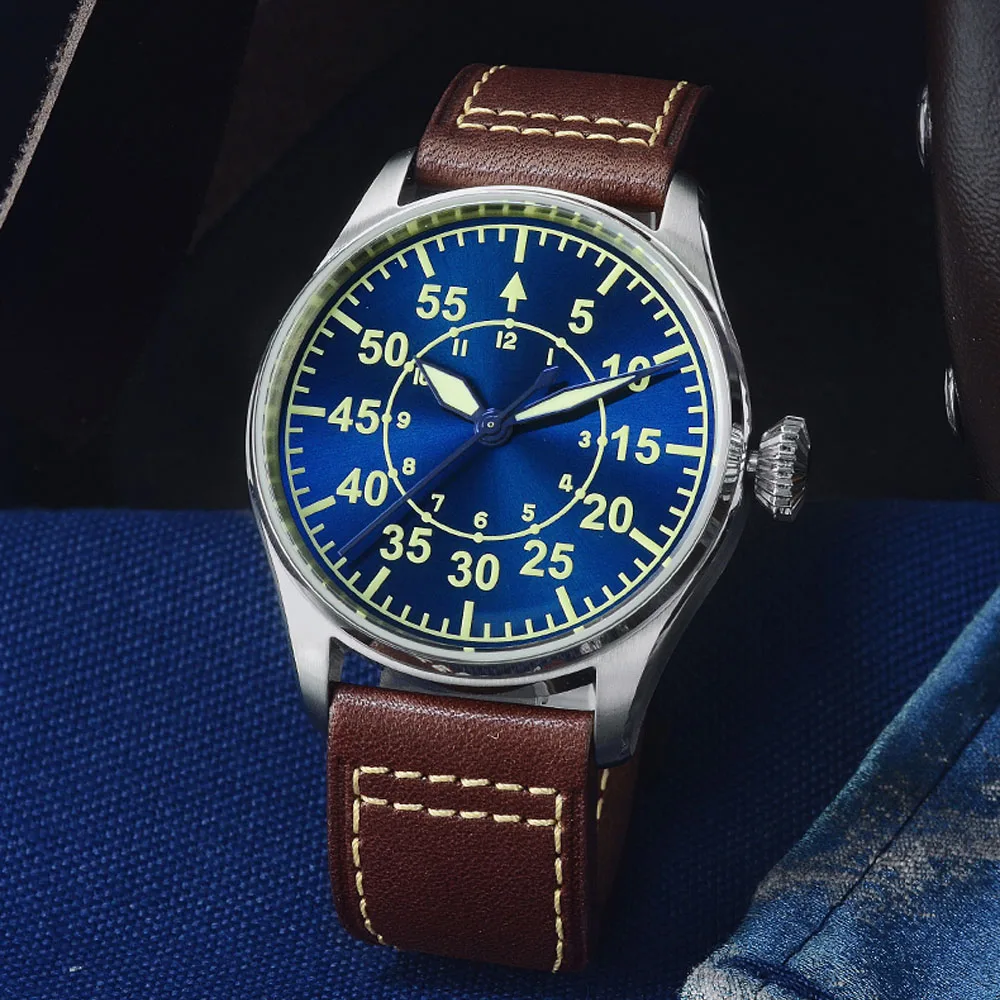 Special Offer سان مارتن الطيار الرجال الميكانيكية الفولاذ المقاوم للصدأ ساعة الياقوت الهيكل العظمي مرة أخرى مضيئة حزام من الجلد 100 متر مقاوم للماء الساعات Discount (50%OFF) Today!