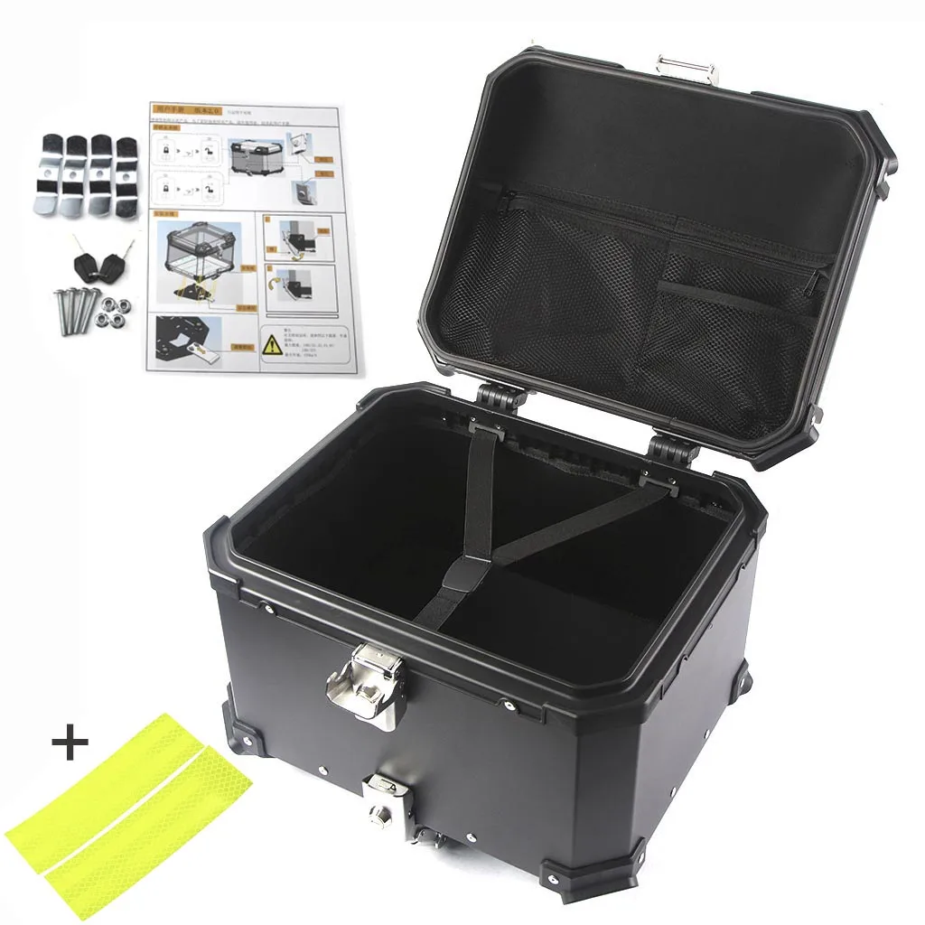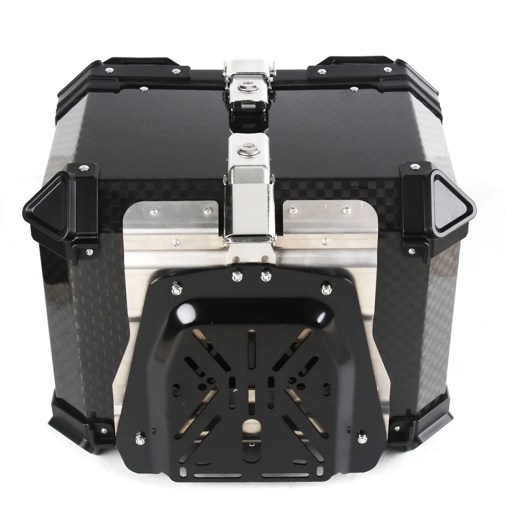 Product Name: 45L ريال 12K ألياف الكربون أعلى الذيل دراجة نارية الخلفية تخزين الأمتعة أداة خوذة صندوق قفل حقيبة جذع مقاوم للماء الألومنيوم العالمي
