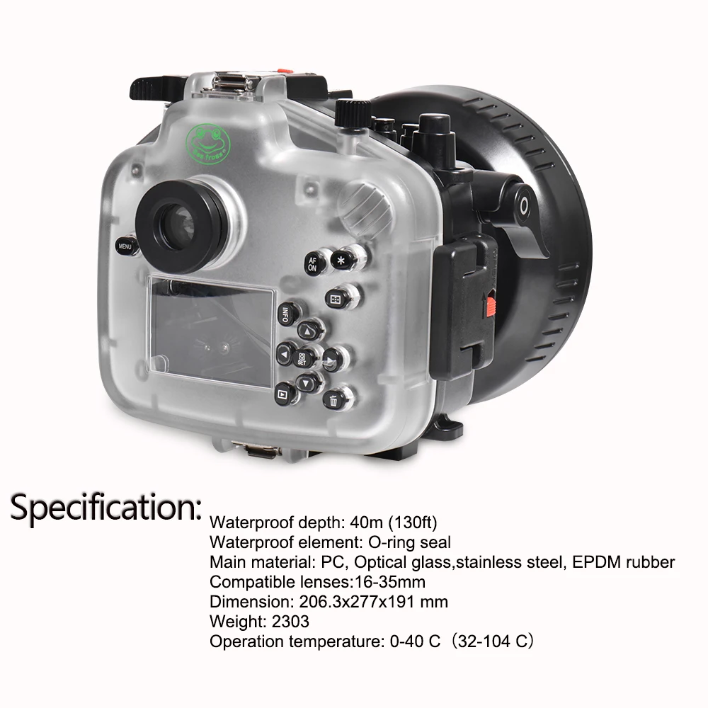 Product Name: Searogs 40 متر الغوص حاوية الكاميرا لكانون EOS R كاميرا مقاومة للماء الحال مع عدسة 16-35 مللي متر تحت الماء الغطاء الواقي 1 قطعة