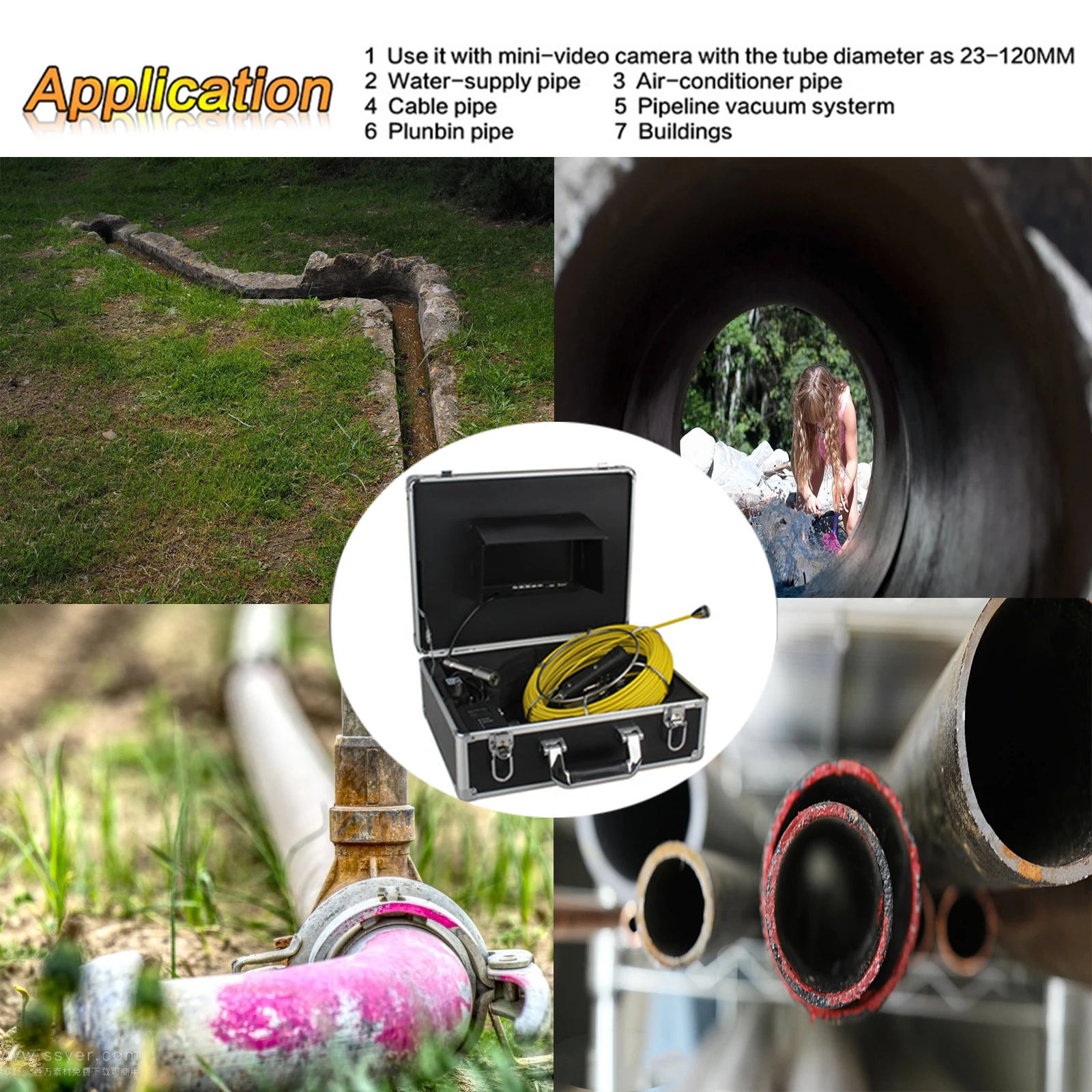 Product Name: WP90 8GB SD بطاقة IP68 مقاوم للماء DVR إعادة تقدير المحمولة حمل كاميرا المنظار خط أنابيب التفتيش 9 "TFT شاشات كريستال بلورية
