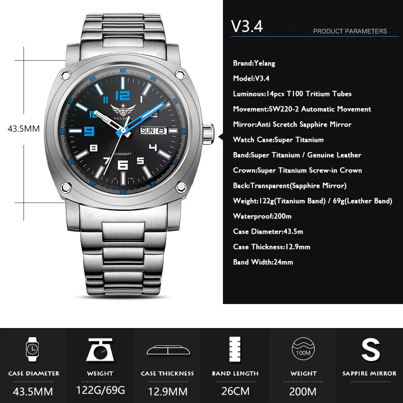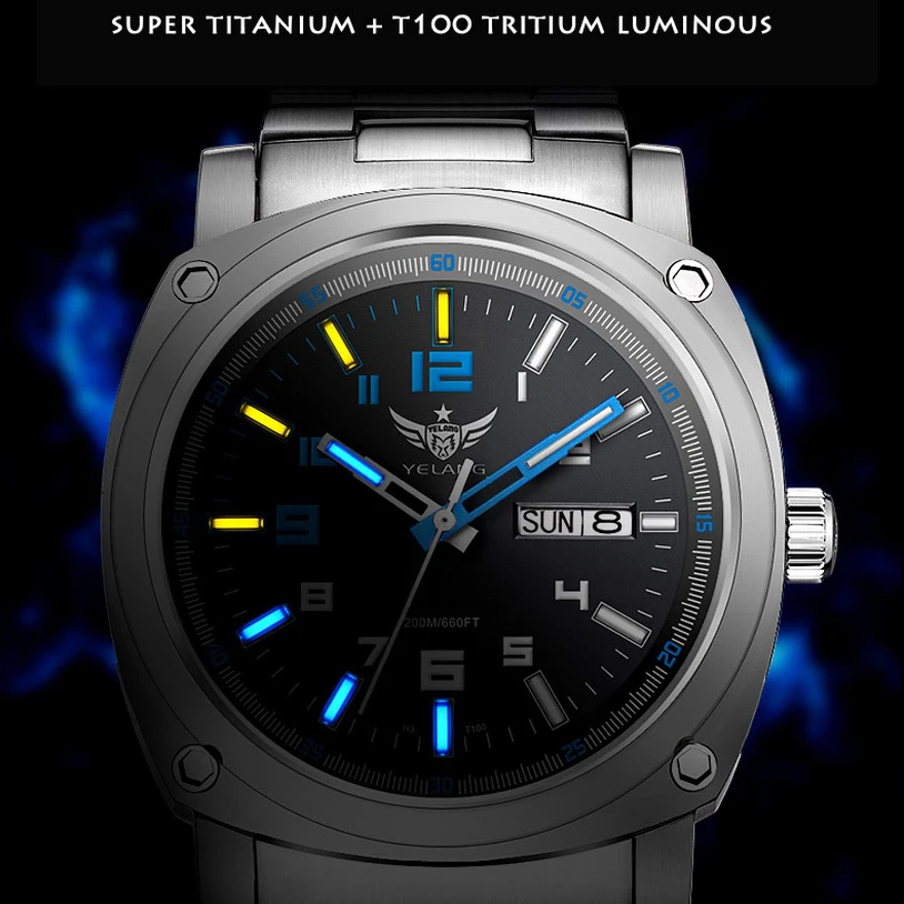 Product Name: ييلانغ الرجال التريتيوم ساعة رجالي ساعات أوتوماتيكية حالة التيتانيوم الفاخرة 200 متر مقاوم للماء ساعة اليد الميكانيكية الياقوت مرآة