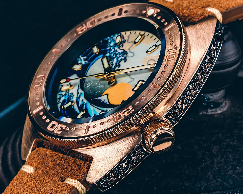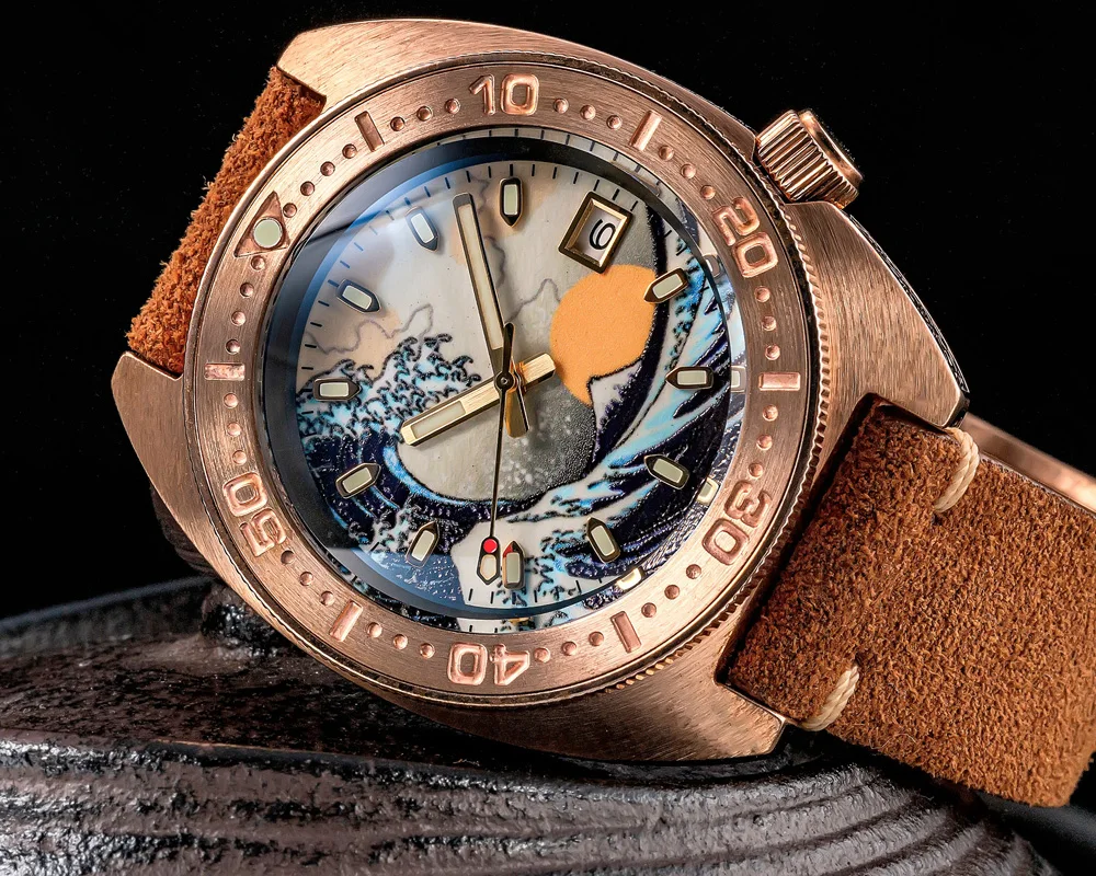 Product Name: SHIRRYU السلاحف البرونزية غواص ساعة رجالية التلقائي NH35 حركة نحت حافظة برونزية كاناغاوا مضيئة الهاتفي الغوص 200 متر مقاوم للماء