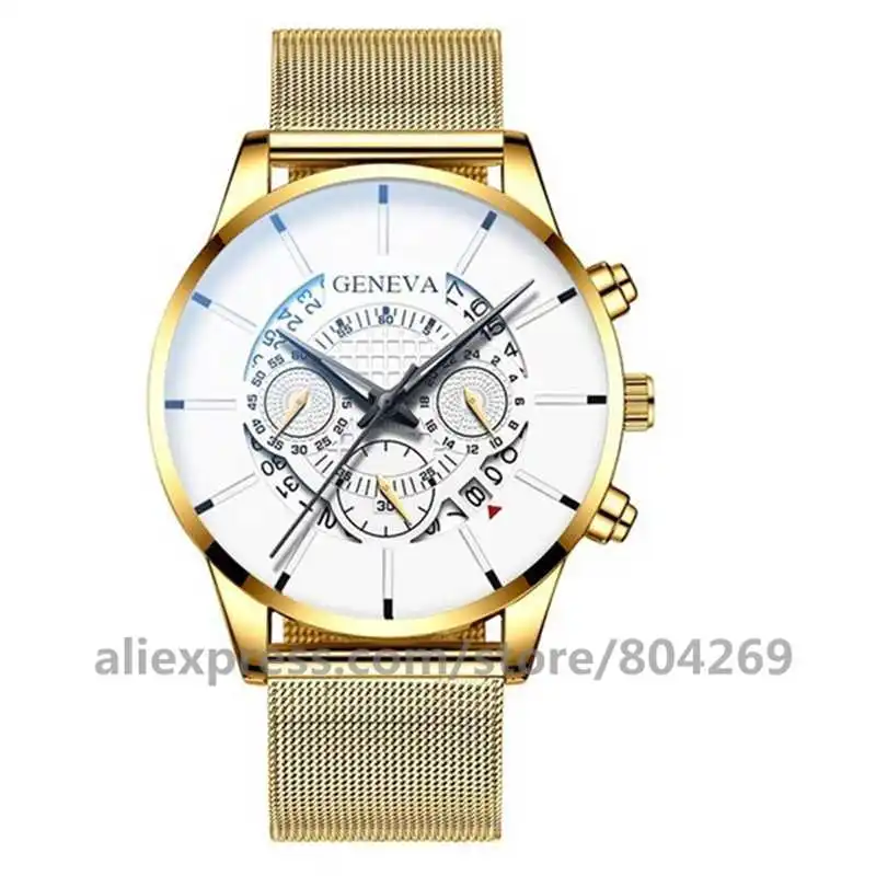 Product Name: ساعة نسائية من خليط معدني ، عصرية ، حالة فضية ، كوارتز ، فستان شبكي ، ساعة يد جنيف ، بيع بالجملة