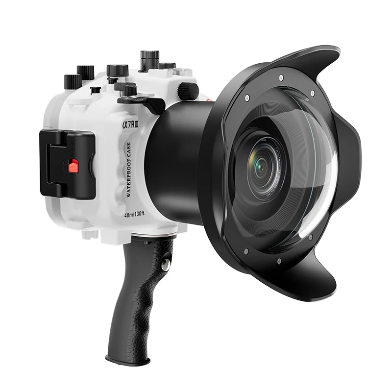 Product Name: Seafrogs 40 متر كاميرا مقاومة للماء حالة لسوني A7RIII/A7III 16-35 مللي متر 28-70 مللي متر 90 مللي متر عدسة مع بقبضة مسدس