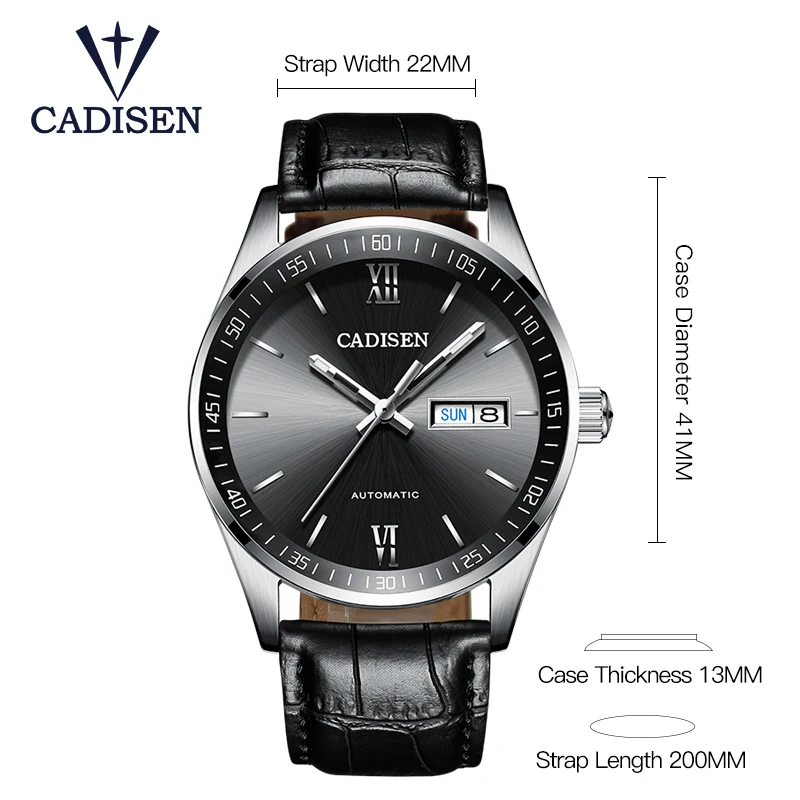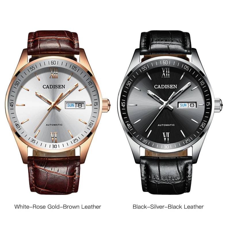 Special Offer التلقائي مشاهدة الرجال حاوية من الفولاذ المقاوم للصدأ مزدوجة التقويم عرض الزجاج المعدني 50 متر عميق مقاوم للماء ساعة جلدية سوداء فضية Discount (55%OFF) Today!