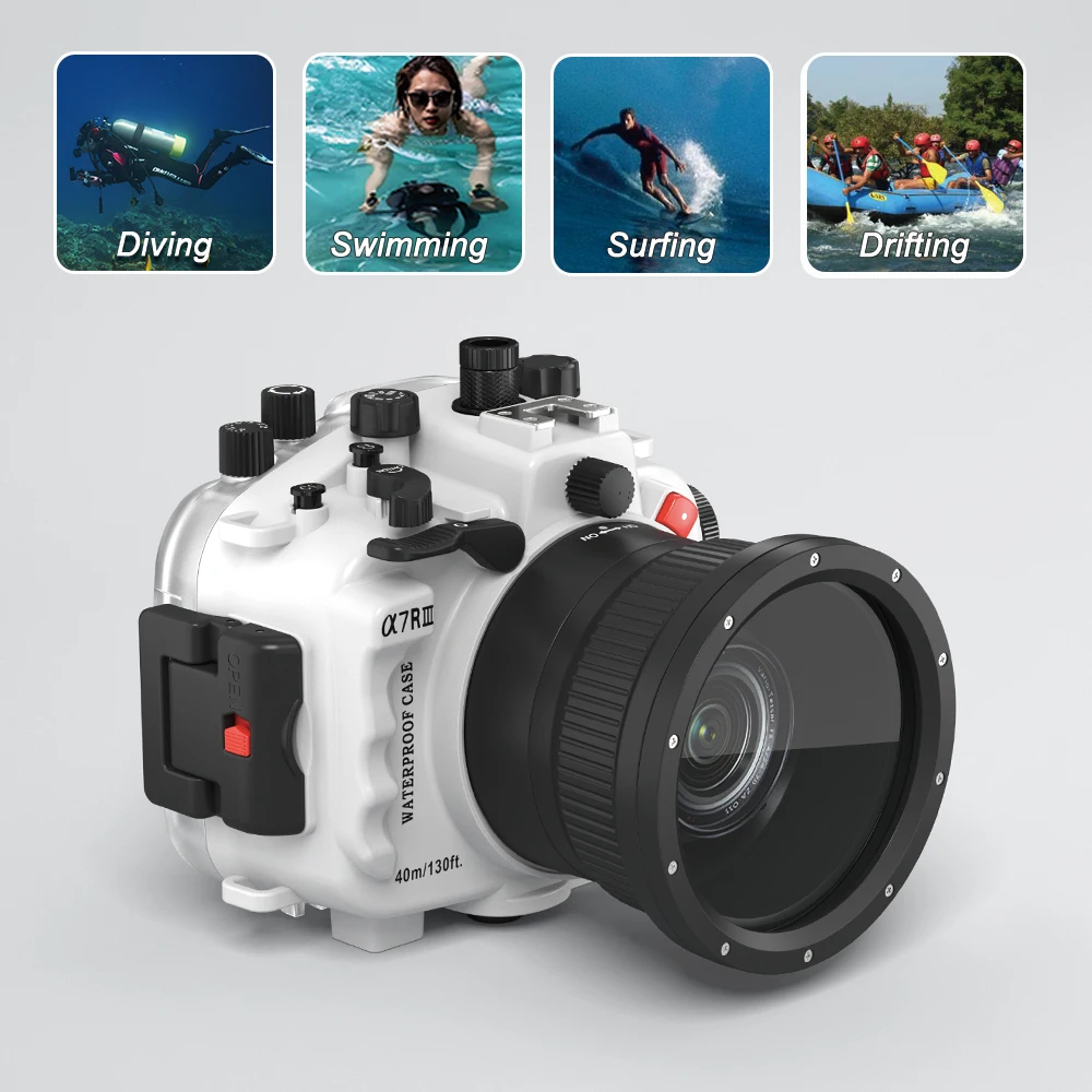 Product Name: لسوني A9 / A7 III A7R3 A7RIII A7III A7M3 / A7 II A7II A7M2 A7SII A7RII / A7 A7R A7S كاميرا تحت الماء الإسكان الغوص حالة