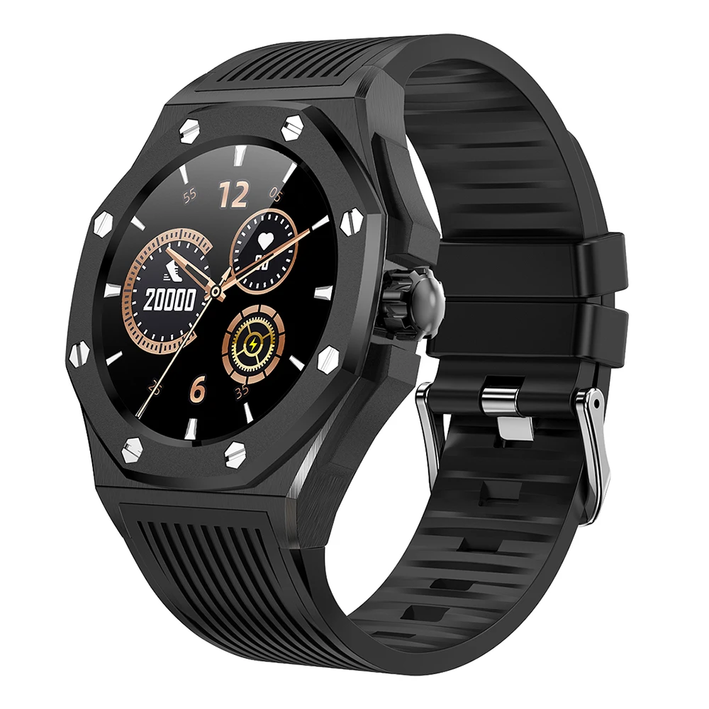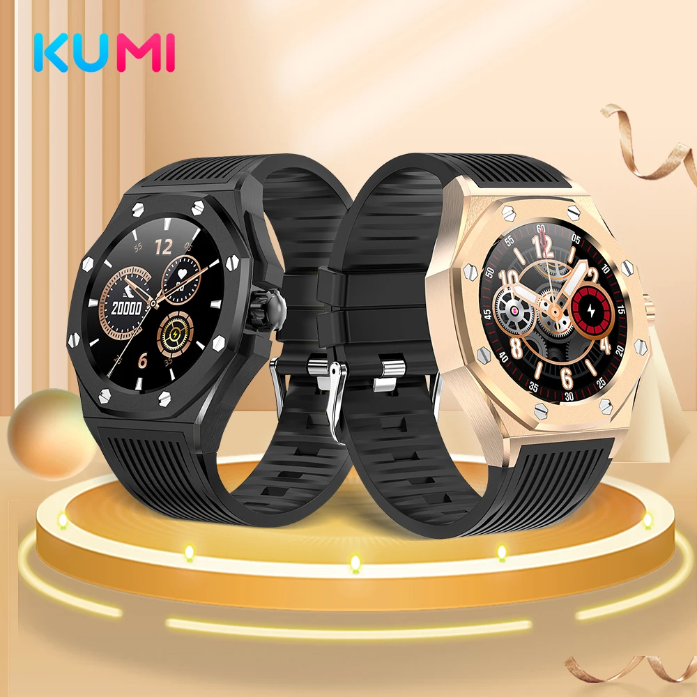 Product Name: KUMI GW20 ضوء الرجال الفاخرة الأعمال Smartwatch موضة الرياضة الرياضة حاوية من الفولاذ المقاوم للصدأ سيليكون حزام ساعة ذكية ساعة اليد