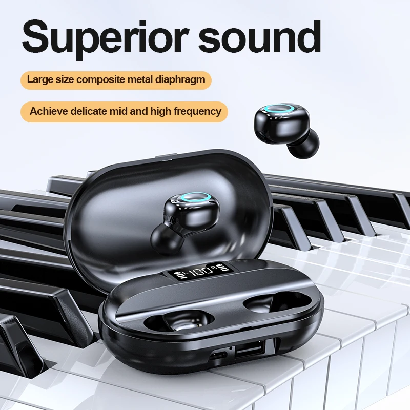 Product Name: جديد TWS بلوتوث 5.0 سماعة ستيريو سماعات لاسلكية الرياضة سماعات مقاومة للماء مع شاشة ديجيتال الذكية هيئة التصنيع العسكري بالجملة